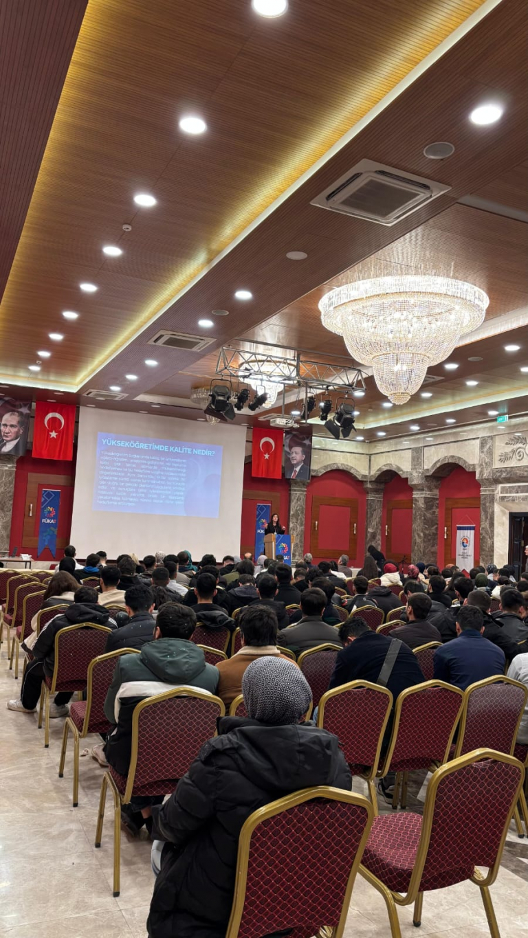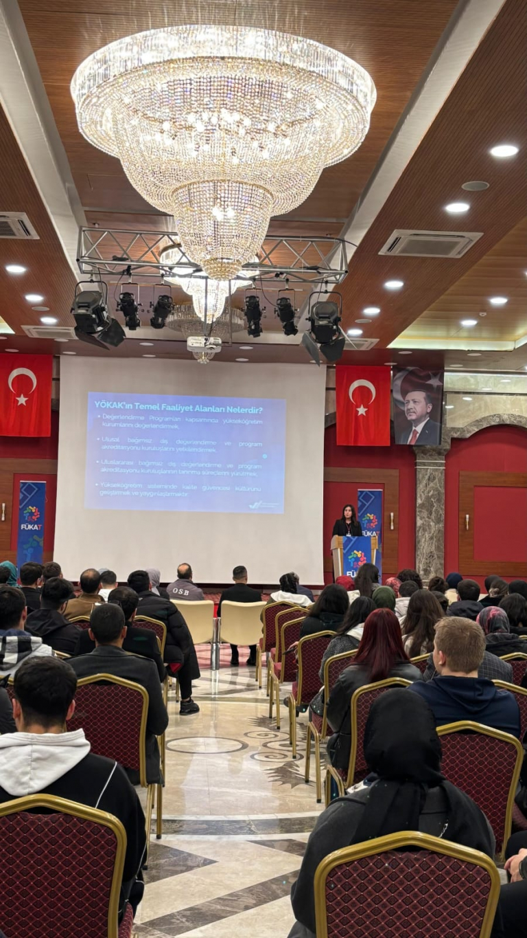 Etkinlik kapsamında, yükseköğretimde kalitenin önemi ve öğrencilerin bu sistemdeki kilit rolü üzerine bilgilendirici sunumlar gerçekleştirildi. Sunumlarda Yükseköğretim Kalite Kurulu (YÖKAK) süreçleri ve akreditasyon konuları ele alınırken, öğrencilerimizin kalite güvence sistemine aktif katılımlarının önemi vurgulandı.