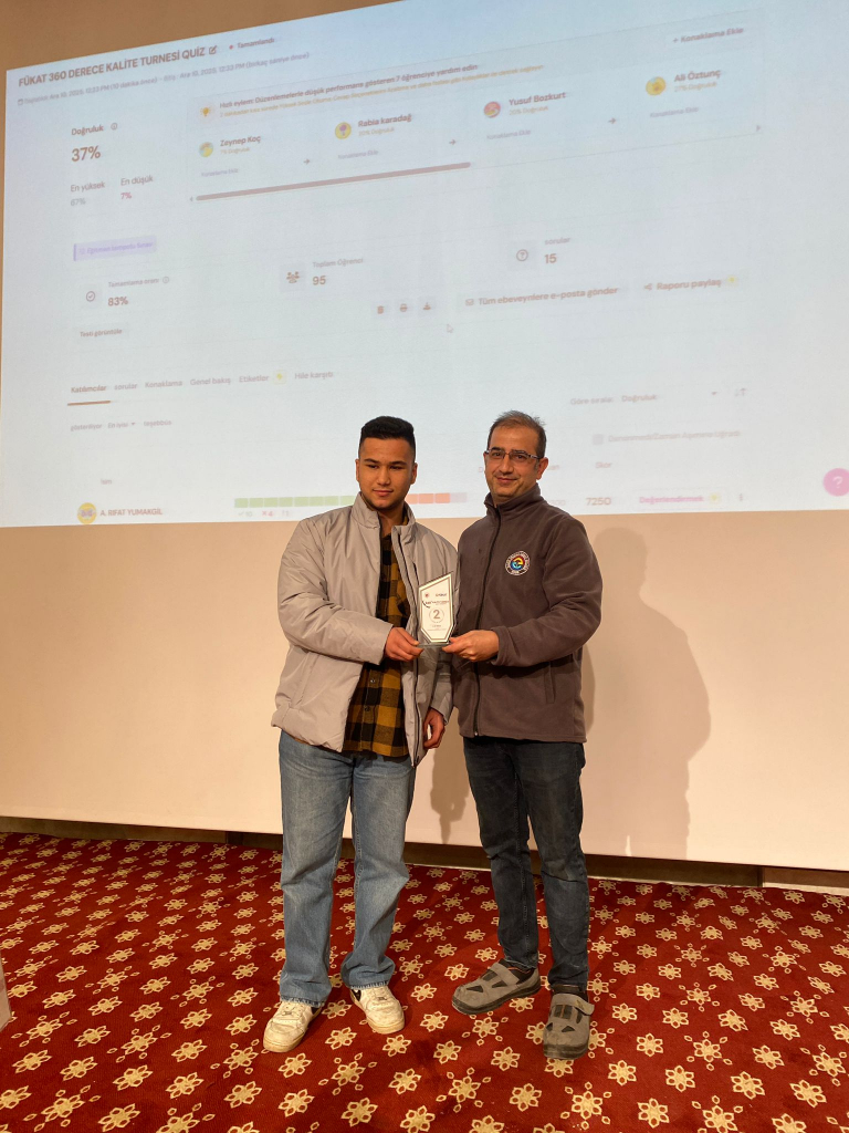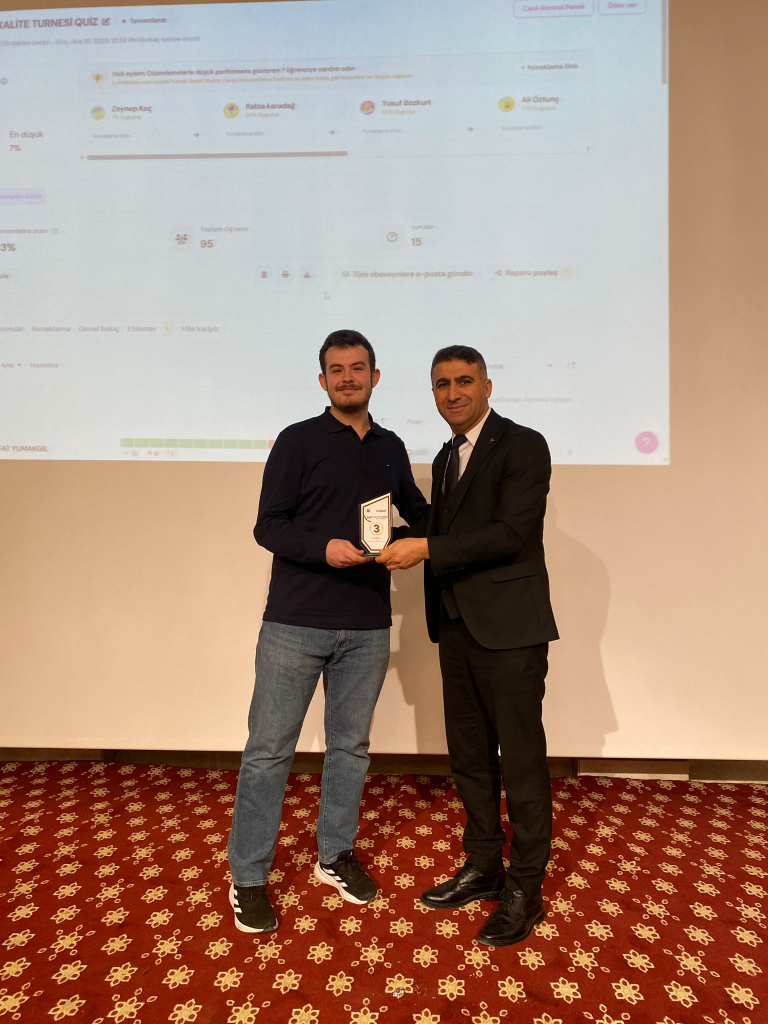 Programın sonunda düzenlenen ödüllü bilgi yarışması (Quiz) ise salonda renkli ve rekabetçi anlara sahne oldu. Kalite bilincinin eğlenceli bir formatta ölçüldüğü yarışmada başarı gösteren öğrencilerimiz ödüllendirildi.