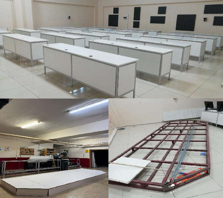 18 ADET ÜÇLÜ BİLGİSAYAR MASASI VE ÖĞRETİM ELEMANI MASASI İÇİN PLATFORM YAPIMI |